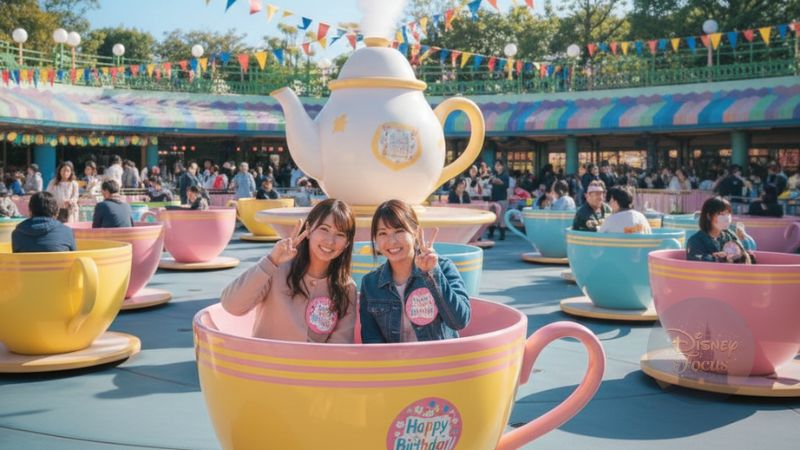 特別な瞬間を記録に残すためには、撮影アングルにもこだわりたいところです。自撮り棒の使用は禁止されていますが、カップの中央にあるハンドル越しに笑顔を捉えたり、アトラクションの外側から回っている様子を撮影したりすることで、躍動感のある写真が撮れます。特に誕生日の主役を中央に配置し、背景に色鮮やかなカップが流れるように撮ると、後で見返した時に当時の興奮が鮮明に蘇ります。