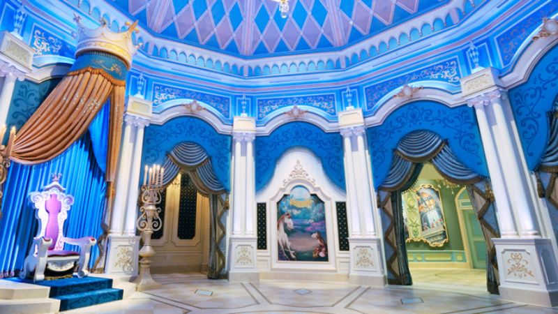 大広間にある「玉座」と「ガラスの靴」は、絶対に外せないフォトスポットです。玉座に座れば、誰もが王室の一員のような気分を味わえます。