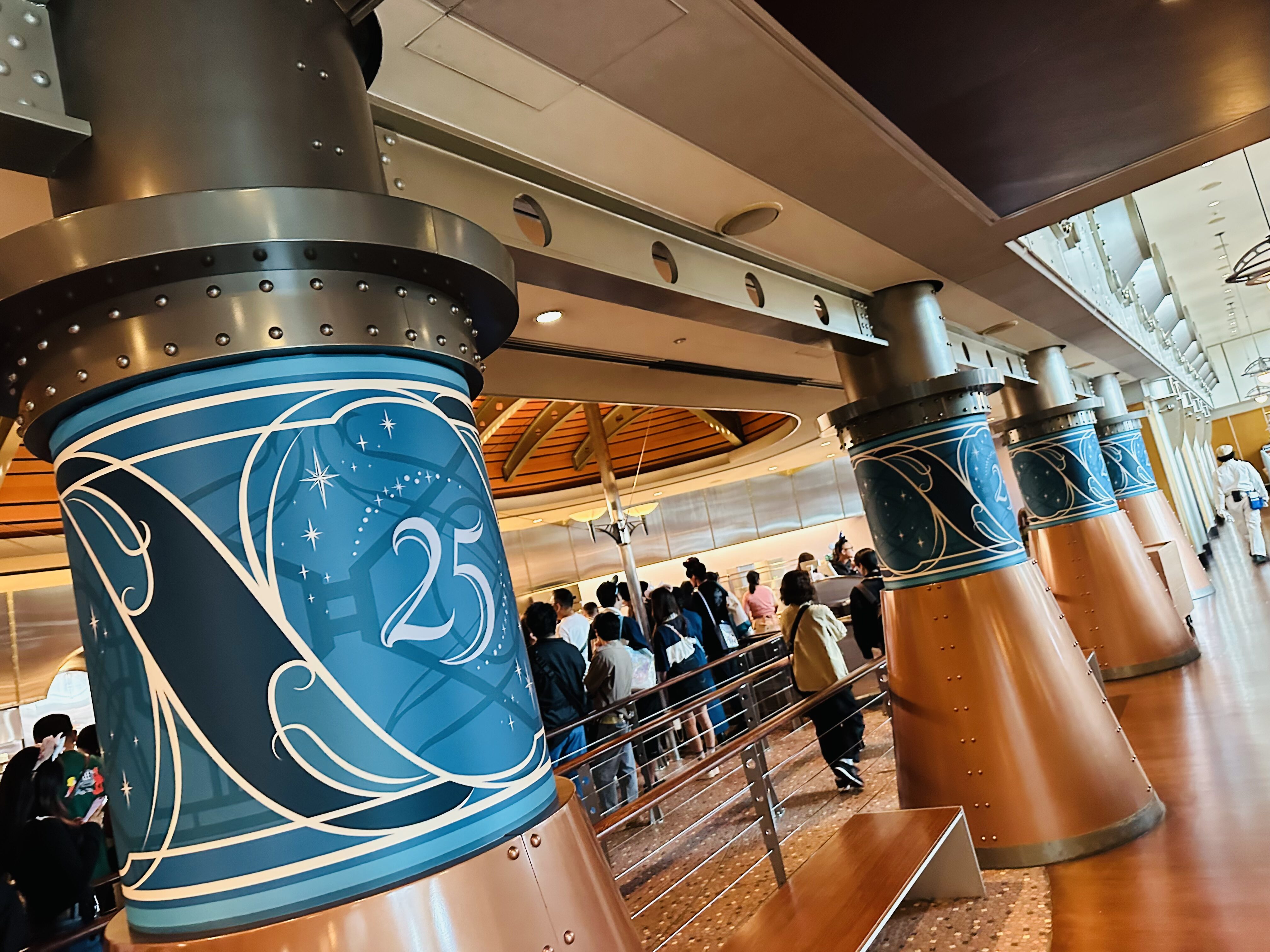 祝祭の活気に溢れるパークにおいて、エネルギー不足は最大の敵です。私は14時前という少し遅めの時間を狙って「ホライズンベイ・レストラン」へと向かいました。ピークを外すことで、喧騒から距離を置き、静かに午後の戦略を練るための空間を確保するためです。