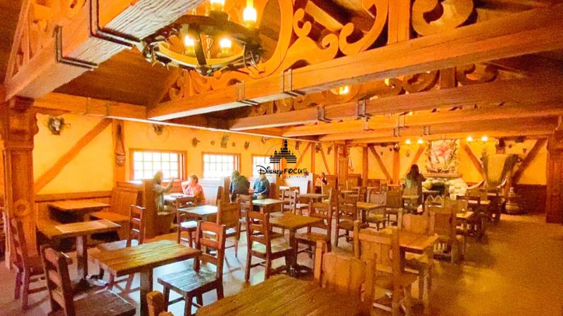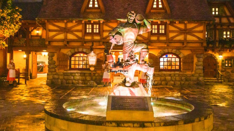 ラ・タベルヌ・ド・ガストンはファンタジーランドの「美女と野獣の村エリア」に位置しています。ファンタジーランドの中でも一際目を引く映画そのものの様なエリア・レストランの外観で熱量が違います。店の前にはガストンの噴水があるのですぐにわかると思います。